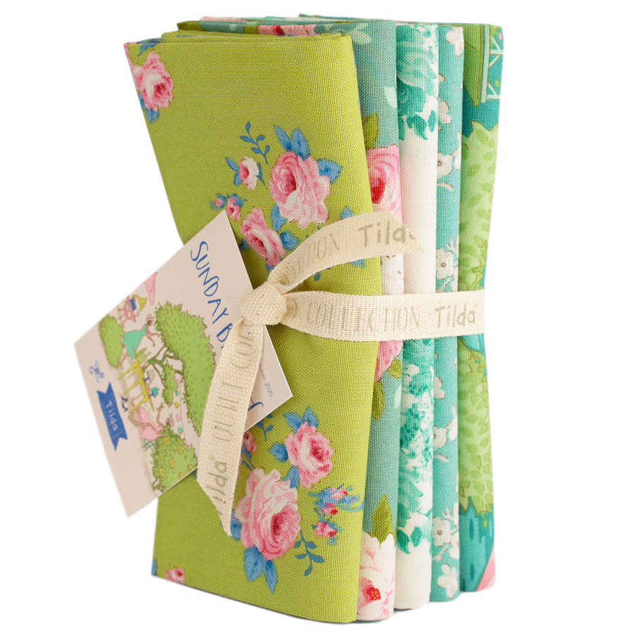 Tilda Sunday Brunch Fat Quarter Bundle 5 fabrics 50 x 55 cm Lime/Teal
